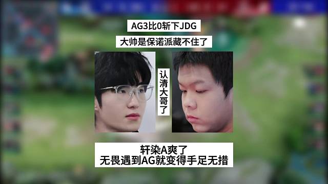 AG3比0斩下JDG,大帅是保诺派藏不住了,轩染A爽了,无畏面对AG就变得手足无措