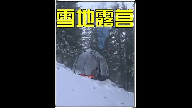 02:11男人在荒野人烟的雪地丛林里,带着星空顶帐篷露营过夜 (2)