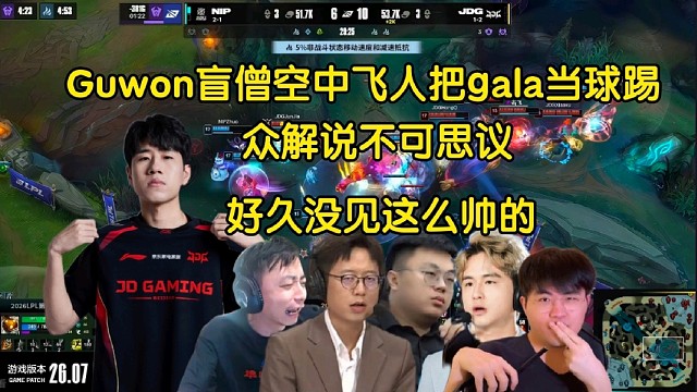 05:08翩若惊鸿!众解说看Guwon盲僧空中飞人把gala当球踢,全员惊掉下巴:好久没见这么帅的盲僧