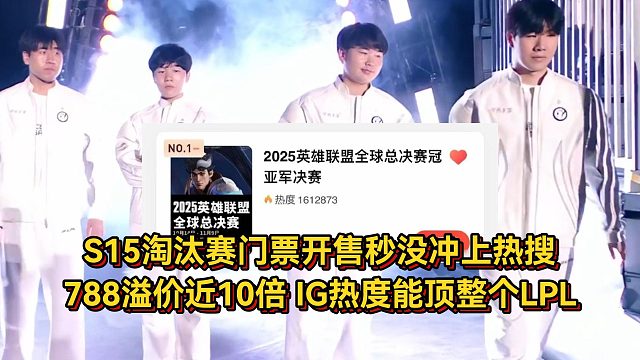 S15淘汰赛门票开售秒没,788门票溢价近10倍!IG热度能顶整个LPL
