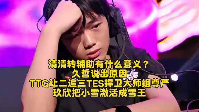 清清转辅助有什么意义?久哲说出原因!TTG让二追三TES捍卫大师组尊严:玖欣把小雪激活成雪王