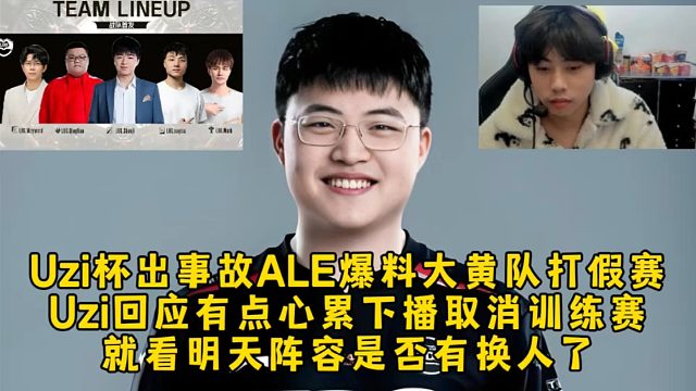01:35Uzi杯出事故Ale爆料大黄队有人假赛,Uzi回应有点心累下播临时取消训练赛,就看明天是否有换人了!