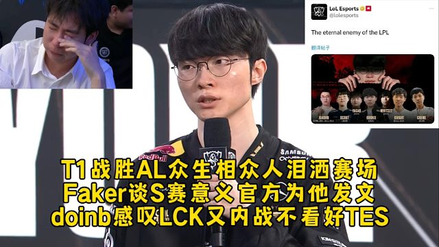 01:20T1战胜AL众生相众人泪洒赛场,Faker谈S赛意义官方为他发文,doinb感叹决赛LCK又内战