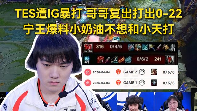 01:00TES首战遭IG暴打,哥哥复出四战打出0-22,宁王爆料小奶油不想和小天打