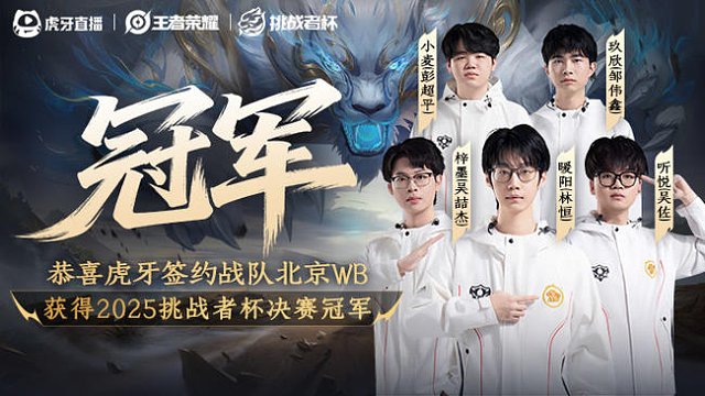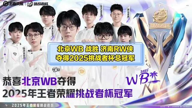 00:21恭喜 北京WB 战胜 济南RW侠 夺得2025王者荣耀挑战者杯总决赛总冠军